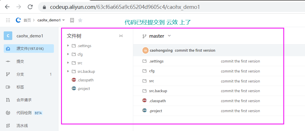 刷新一下云效仓库,哇,代码已经上来了奥。
