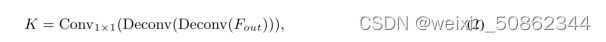 我们采用两种轻量级解码器对骨干网提取的特征进行处理,并对关键点进行定位。第一个是经典的解码器。它由两个反卷积组成,每个反卷积块包含一个反卷积层,后面是批归一化[19]和ReLU[1]。按照以往方法的共同设置[42,50],每个块对特征图进行2次上采样。然后利用核尺寸为1 × 1的卷积层得到关键点的定位热图,即: