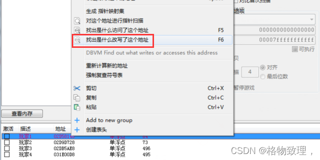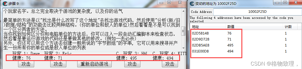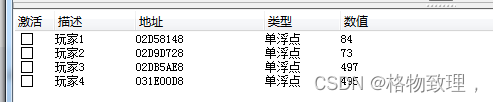再分别攻击这四个玩家,四个玩家健康值地址就会显示出来。