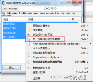 选中四个玩家地址,然后右键选择“打开选中地址的分析数据”: