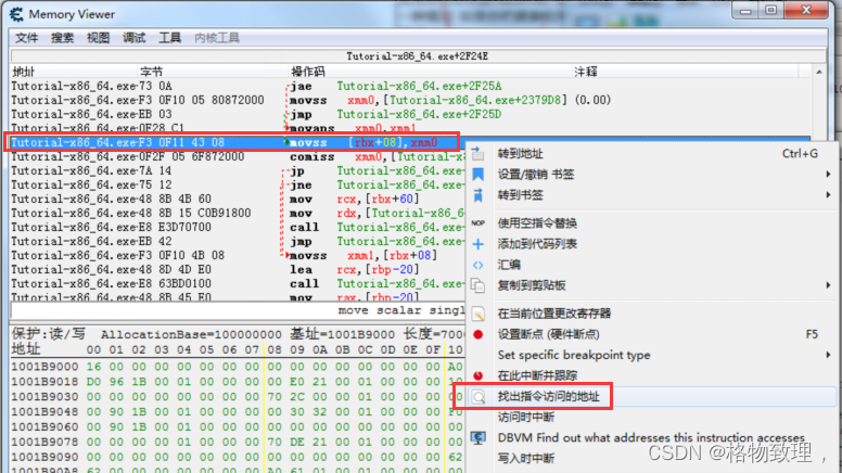 在四个玩家的地址上,右键选择“找出是什么改写了这个地址”后,再点击“攻击”该玩家,修改该玩家健康值的指令就会显示出来。