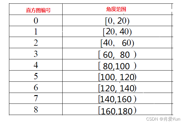 将图像划分为8x8的小网格,对每个小网格内的图像做梯度方向直方图,每个8x8=64个像素为一个cell,对每个cell根据角度分为9个直方图块(BIN),对cell内每一个像素用梯度方向在直方图中进行加权投影,映射到固定的角度范围,就能够得到这个cell的梯度方向直方图了,就是该cell中对应的9维特征向量,例如,20°-40°和200°-220°划入一个直方图块里。