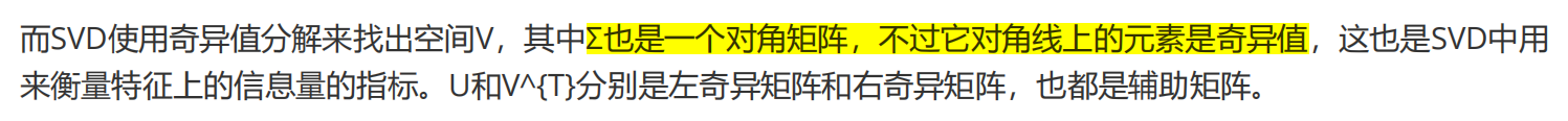 在矩阵分解时,PCA是有目标的:在原有特征的基础上,找出能够让信息尽量聚集的新特征向量。在sklearn使用的PCA和SVD联合的降维方法中,新特征向量组成的新特征空间就是 V(k,n)