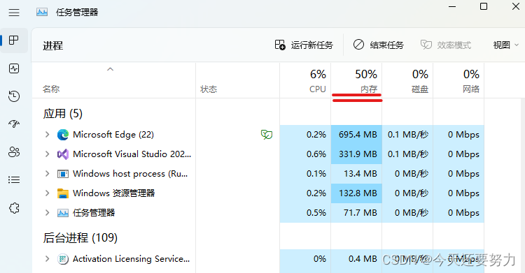 如下图:是你可以在你自己电脑上见到内存情况的两种方式(快捷键Win+D,然后打开任务资源管理器)