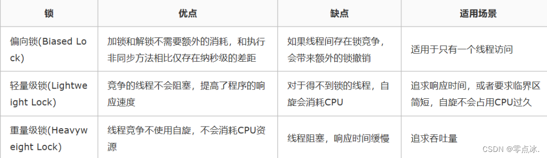 Jdk1.6后对锁的实现引入了大量的优化,如自旋锁、适应性自旋锁、锁消除、锁粗化、偏向锁、轻量级锁等技术来减少锁操作的开销。
