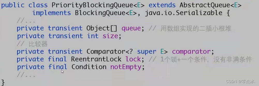 类似于ArrayBlockingQueue,区别在于用数组实现一个二叉堆,实现按自然顺序或者自定义比较器顺序出队列。(在插入数据时,会按照顺序写入数组)