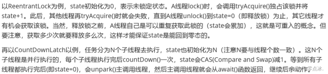 State变量可以理解成同步资源的锁状态,值为0时表示当前资源未被线程占用,值不为0时表示当前共享资源已被线程获取锁。