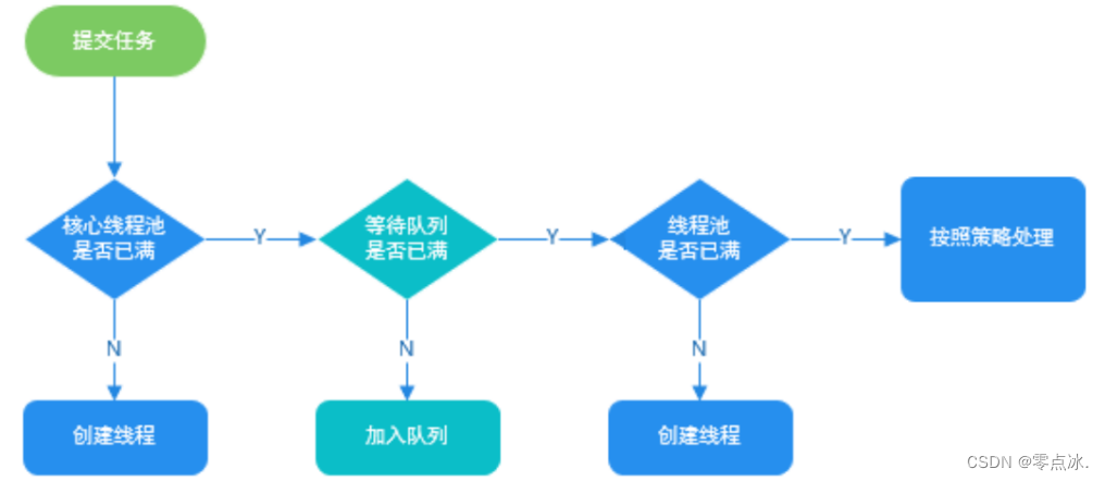 核心线程数->缓冲队列->最大线程数->拒绝策略。