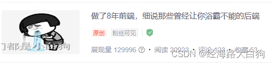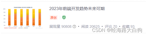 这篇博客其实最初从百度搜索,比如前端开发趋势,2023年前端开发,2023年前端开发等关键词都是可以搜到的,但慢慢的被好多小网站利用爬虫技术爬过去了,估计也是搜不到了 。不过你可以点这里: