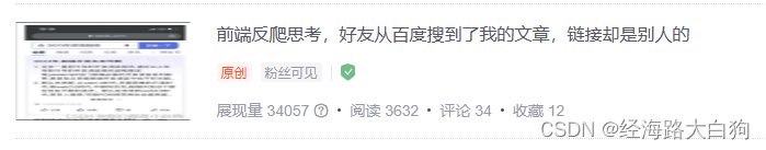 2.、前端反爬思考,好友从百度搜到了我的文章,链接却是别人的