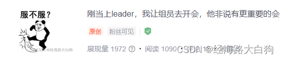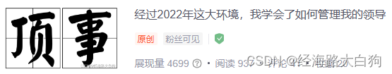 如果你只是单纯的写代码,觉得把代码写漂亮,把项目完成就算优秀了,那你只能去背面试题,准备去下家公司做优秀员工了。领导不仅是我们职场的领导,更是我们完成工作,实现职业理想的资源,我们要好好利用起来。而我们也不应该仅仅是被管理,还应该去适当的管理我们的领导。所以,在2023年,我建议你读一读这篇博客,好好管理一下自己的领导,你会感谢我的。