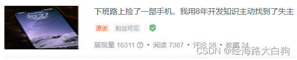 写完这篇博客的时候,有人评论说:我看成了“我用8年时间找到了失主”,看完这个评论让我笑喷了,用8年时间去找失主,这得是什么样的精神,什么样的手机啊,这篇博客我分享到脉脉上,关注度还是挺高的,有的在问你收钱了没,有的在问你是怎么主动找到失主的,一直看到最后那串代码,估计大家就都明白了。如果你捡到手机想主动联系到失主吗?那你真的需要看一下我的这篇博客的思路: