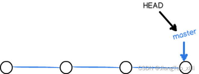 - 初始状态,Git只有一条时间线(分支),这个分支叫主分支,即master分支。