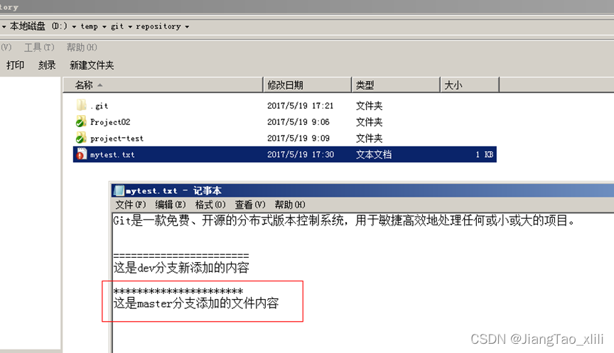 - 例如在master分支中对mytest.txt进行编辑: