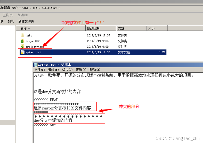 - 冲突需要手动解决。