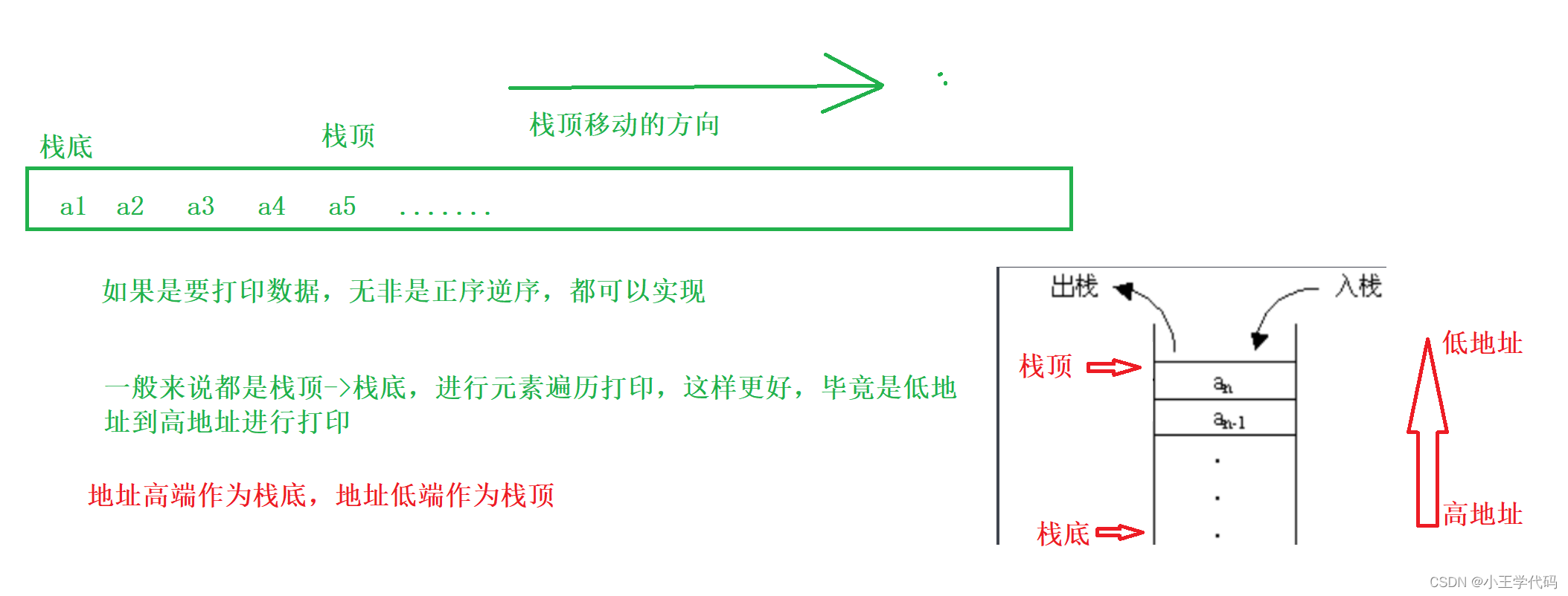 void StackPrint(ST* ps) {//打印栈表assert(ps);for (int i = 0; i < ps->top; i++) {printf("%d ", ps->data[i]);}printf("\n");