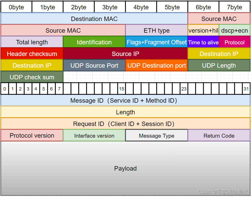 对于介绍SomeIP协议,我还是想从最基础的协议解析来,所以今天还是先将SomeIP协议详解给大家列举一下,也方便大家在工作中如果不记得哪些信息随时可以查看学习,也算是留给我自己的笔记吧,毕竟确实容易忘记。