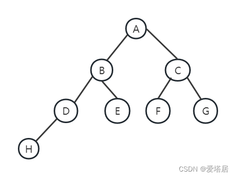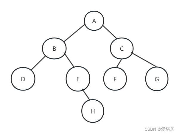 }public TreeNode createTree( ){TreeNode A=new TreeNode('A');TreeNode B=new TreeNode('B');TreeNode C=new TreeNode('C');TreeNode D=new TreeNode('D');TreeNode E=new TreeNode('E');TreeNode F=new TreeNode('F');TreeNode G=new TreeNode('G');TreeNode H=new TreeNode('H');A.left=B;A.right=C;B.left=D;B.right=E;C.left=F;C.right=G;E.right=H;return A;}