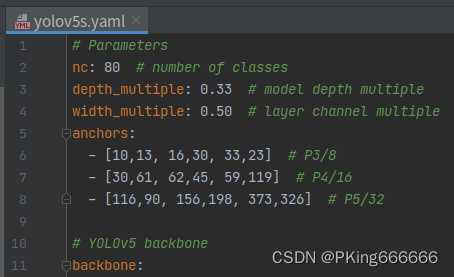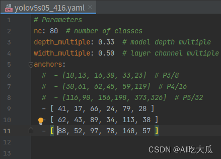 官方yolov5s的Anchor是基于COCO数据集进行聚类获得(详见models/yolov5s.yaml文件)