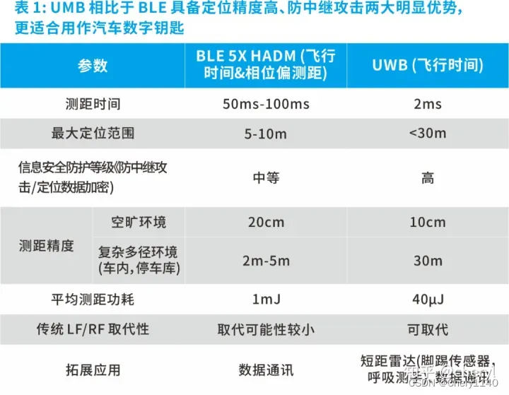 (3)安全性:PEPS、蓝牙、NFC都面临的问题是不能防止中继攻击——但是UWB信号中加入了安全时间戳,只有与接收端的滚码相匹配后才能得到对应的时间戳,进而解锁车辆,极大地提升了UWB数字钥匙的防中继攻击能力;另外因为UWB能在30米范围内精确定位钥匙位置,系统也会判定车钥匙不在有效范围内,如此一来攻击者便无法对系统进行欺骗。