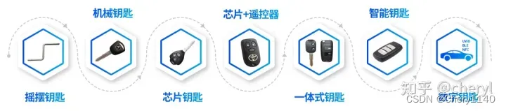 汽车钥匙经历了机械钥匙、遥控钥匙、PEPS、数字钥匙四个阶段,而数字钥匙又分为BLE/NFC/UWB三种技术路线。