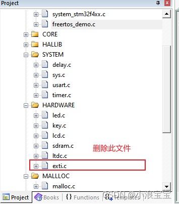 4.2移除工程中exti.c文件