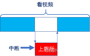 举例说明:小明在看视频的时候突然肚子疼,必须要上厕所,打断看视频的任务,去上厕所, 暂停视频播放,上完厕所后,继续从暂停处继续观看视频。