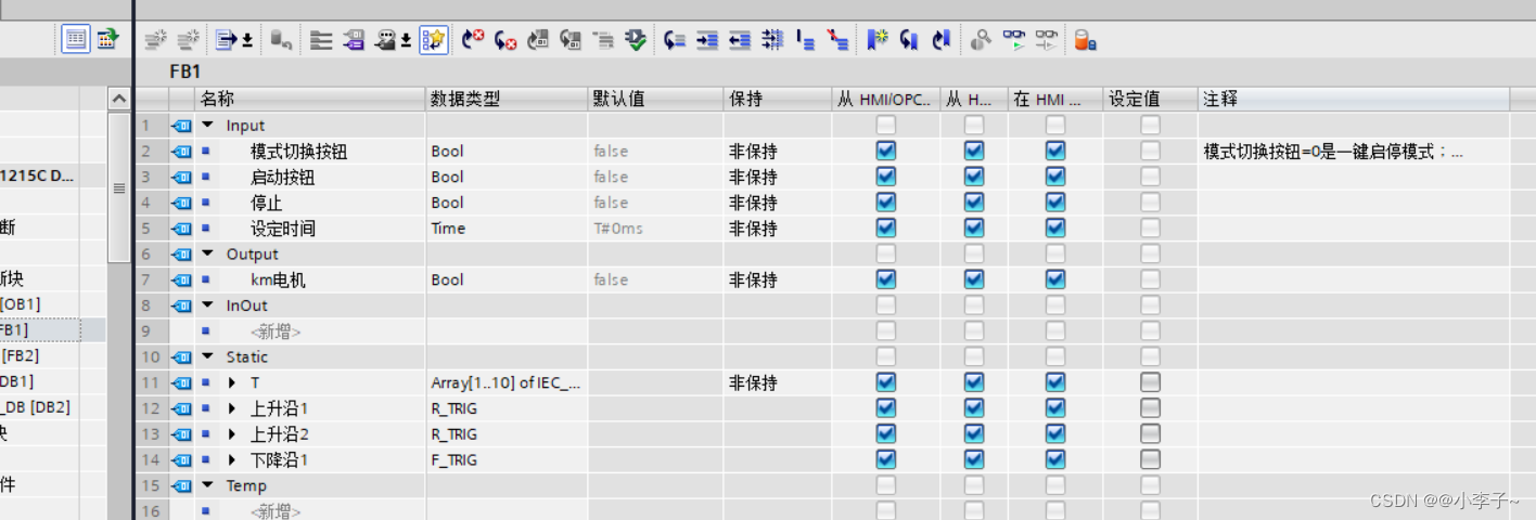 2.定时器技巧:可以在FB块 静态变量中建立定时器,不容易混乱,或在DB中建立;