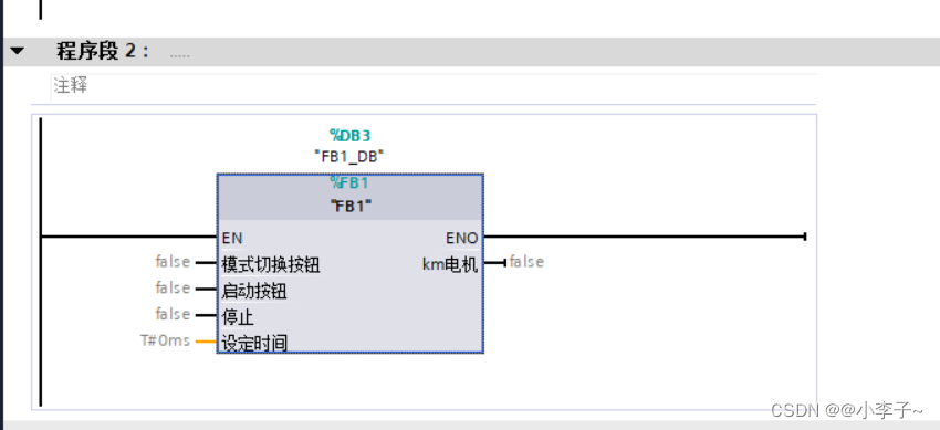 代码写好后,在main(OB)中调用FB函数:两边是接口,我们写入相应的输入输出就可以啦!