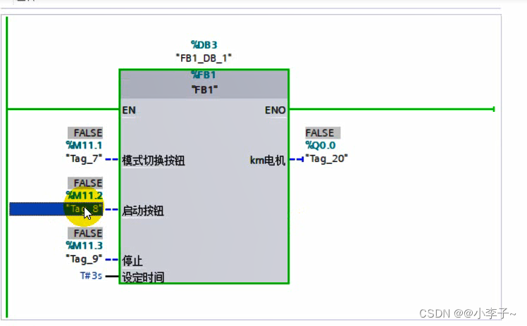一键启停:按下启动按钮电机启动,再次按下启动电机停止,这里用梯形图和scl分别实现一下 。