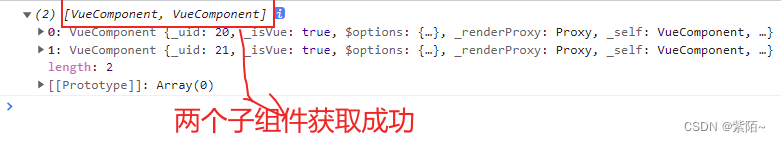 $children组件实例的属性,可以获取到当前组件的全部子组件[子组件多的情况是数组形式的]