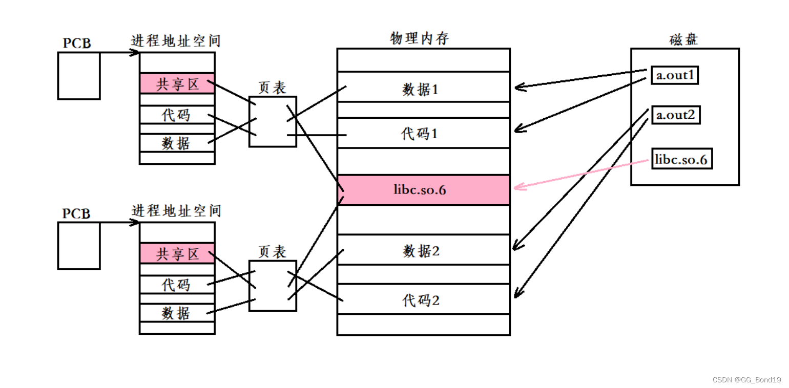 在可执行文件开始运行前,外部函数的机器码由操作系统从磁盘上的该动态库中复制到内存中,这个过程称为动态链接。操作系统采用虚拟内存机制使得物理内存中的一份动态库被所有要使用该库的进程共用,节省了内存空间。