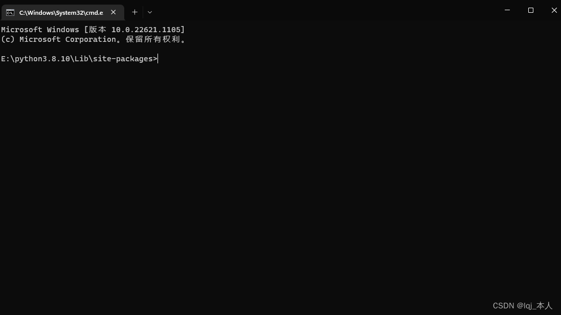 5.用cmd打开python中的Lib中的site-packages路径(就是说,.whl存放的文件夹的路径用cmd打开):