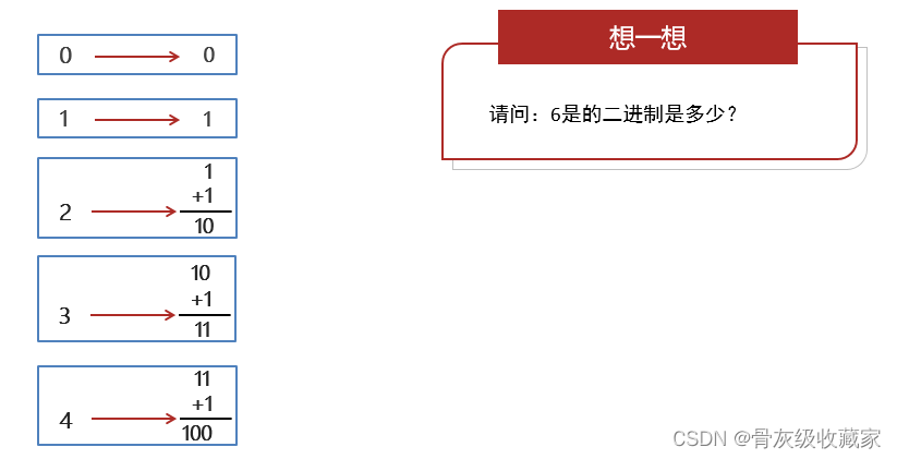 只有0、1,按照逢2进1的方式表示数据: