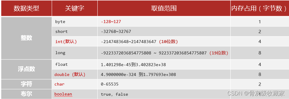 基本数据类型:4大类8种。