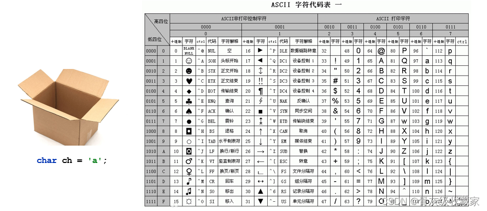 ASCII编码表:即美国信息交换标准编码,规定了现代英语、数字字符、和其他西欧字符对应的数字编号。