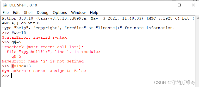 以上这些都是规定好的量,我们不可以把这些作为变量的名字。