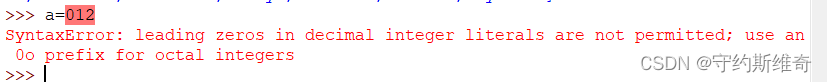 整形在Python不需要进行声明int,Python会根据数据进行类型转换,直接a=整数就行了,非常简单。但是开头数字不可以为0,否则就会报错。