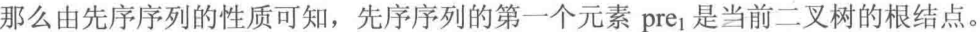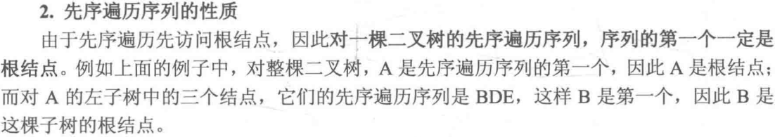 //如先序遍历,根据中序遍历序列得出左右子树的长度,A/BC/DEF,B和D又是一个根结点,且为A的左右孩子,即一次遍历能确定两个左右孩子,从而确定出一颗二叉树,如下图