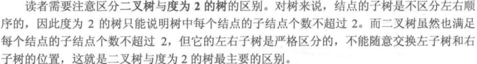 //二叉树有严格的左右子树之分,度数为2的树则没有对此进行要求。