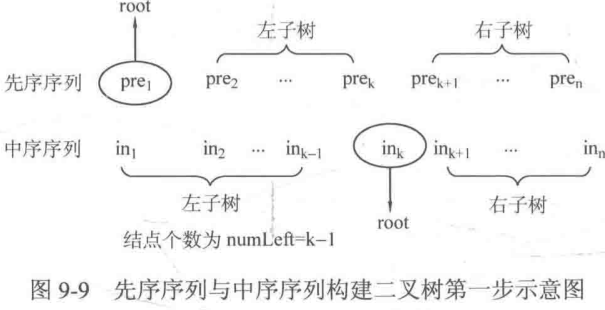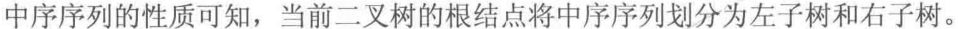 //通过中序遍历序列区分左右子树序列,通过先序遍历或者后序遍历序列或者层序遍历序列确定根节点