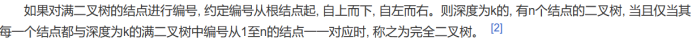 //满二叉树自上而下,从左到右依次进行编号,当且仅当二叉树中的每一个结点的编号都与该满二叉树的结点的编号一一对应,称之为完全二叉树