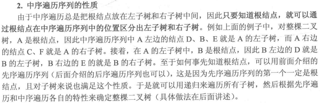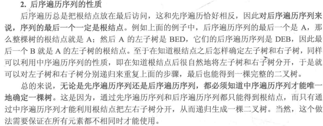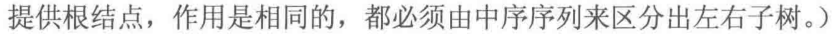 //由图我们可以知道A的子树有哪些结点,右子树有哪些结点,如果只给出一个序列,则我们不能知道左子树的序列多有长,也就不知道右子树的根节点是多少,因此不能确定一棵树