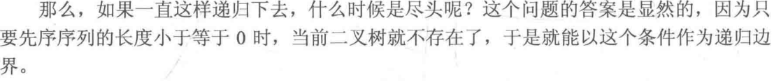//最后一次序列的长度应该是1,即该子树只有一个根节点没有左孩子右孩子,再往下递归先序序列的长度就小于或者等于0了