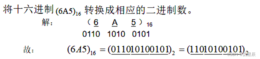 方法:只需将每位十六进制数分别用二进制数表示(最高位的0可以省略)