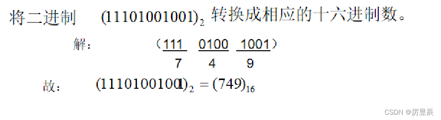 方法:从最低位开始,每4位二进制数为一组,一次用十六进制表示。