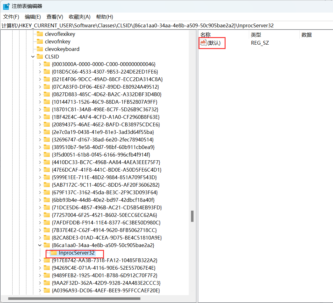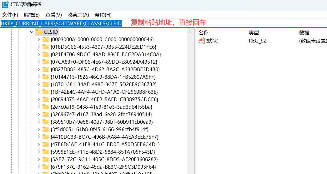 找到:HKEY_CURRENT_USER\SOFTWARE\CLASSES\CLSID