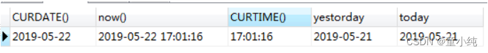 SELECTCURDATE( ),now( ),CURTIME( ),date_sub( CURDATE( ), INTERVAL 1 DAY ) yestorday,date_sub( CURDATE( ), INTERVAL 1 DAY ) today