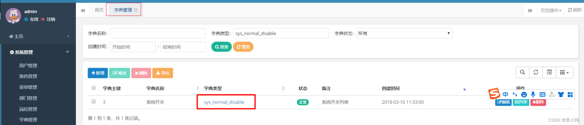 sys_normal_disable 为字典类型值 字典类型值一般为表名字段名来命名防止出现重复