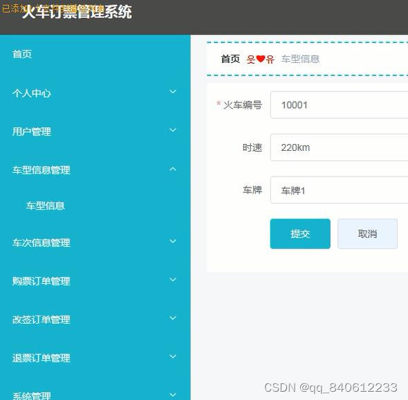 (8)编辑列车基础信息功能:车型管理(高铁、动车、普快、特快等)、车辆管理(座位分级、设置席位数量、设置席位价格)、车站管理(增加、删除车站信息)